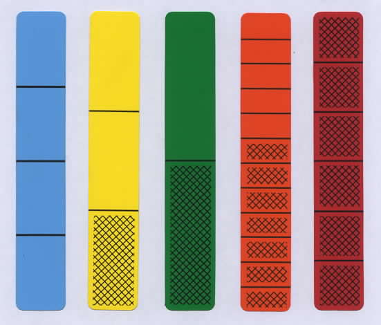 Illustrate Super FRIO by showing the following Fraction Bars. In this game each player is dealt five bars, or five Fraction Playing Cards, which they place in increasing order. Then each player in turn selects an arbitrary bar and replaces one of their five bars, with the goal of obtaining five bars that increase by one part out of 12.